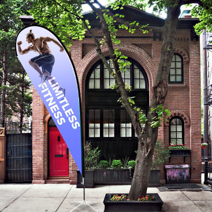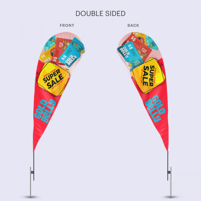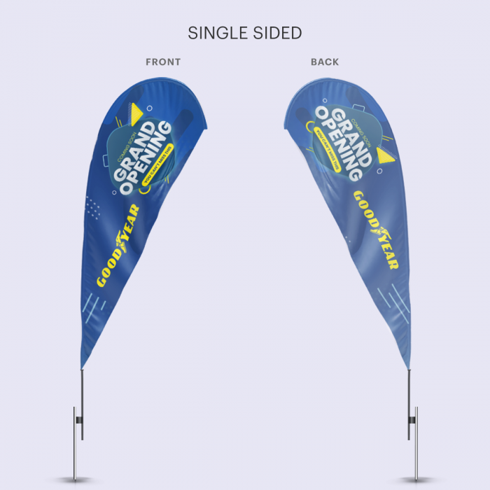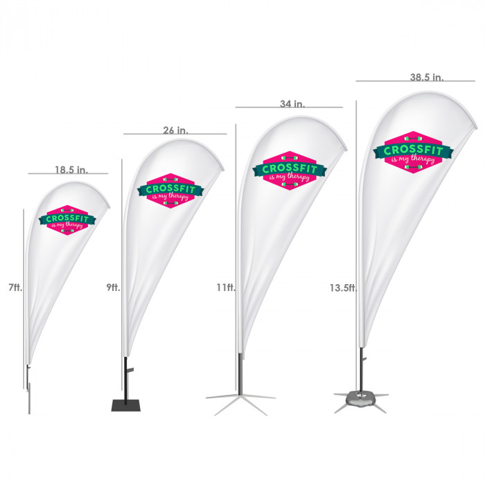 The Teardrop Flag is suitable for indoor and outdoor events. Effectively advertise your logo or message with our medium teardrop flag. Available hardware options including a heavy duty cross base or ground stake to fit to your pole set.